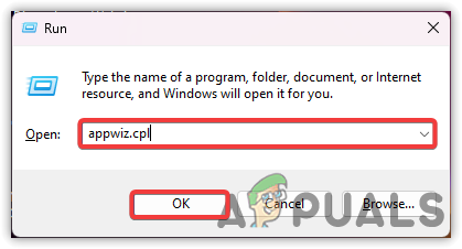 - Type appwiz.cpl and hit Enter to open Programs and Features.