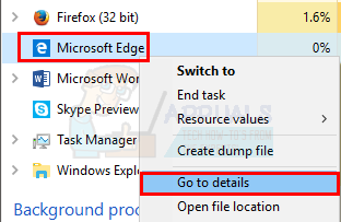 - Right-click on Microsoft Edge in Task Manager and select Go to details.