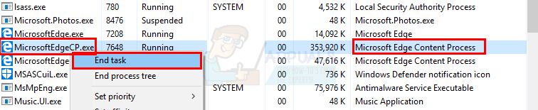 - Locate MicrosoftEdgeCP.exe (in the description it should say Microsoft Edge Content Process).