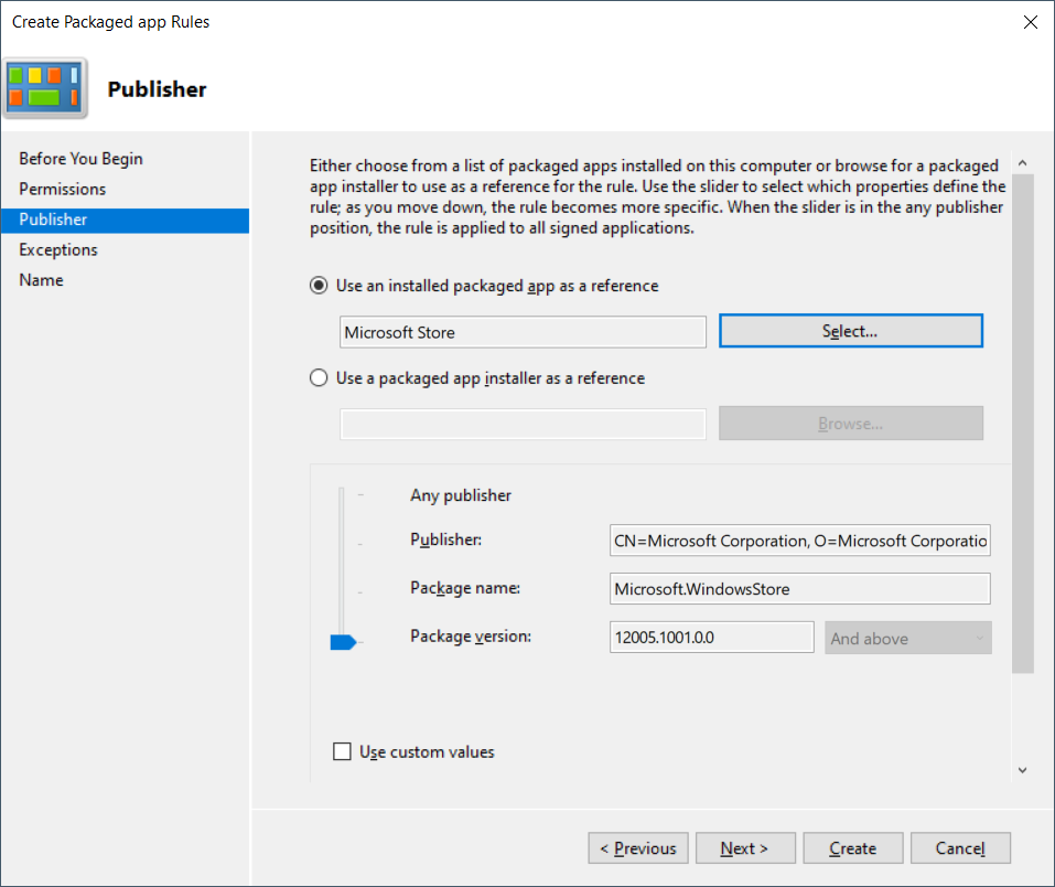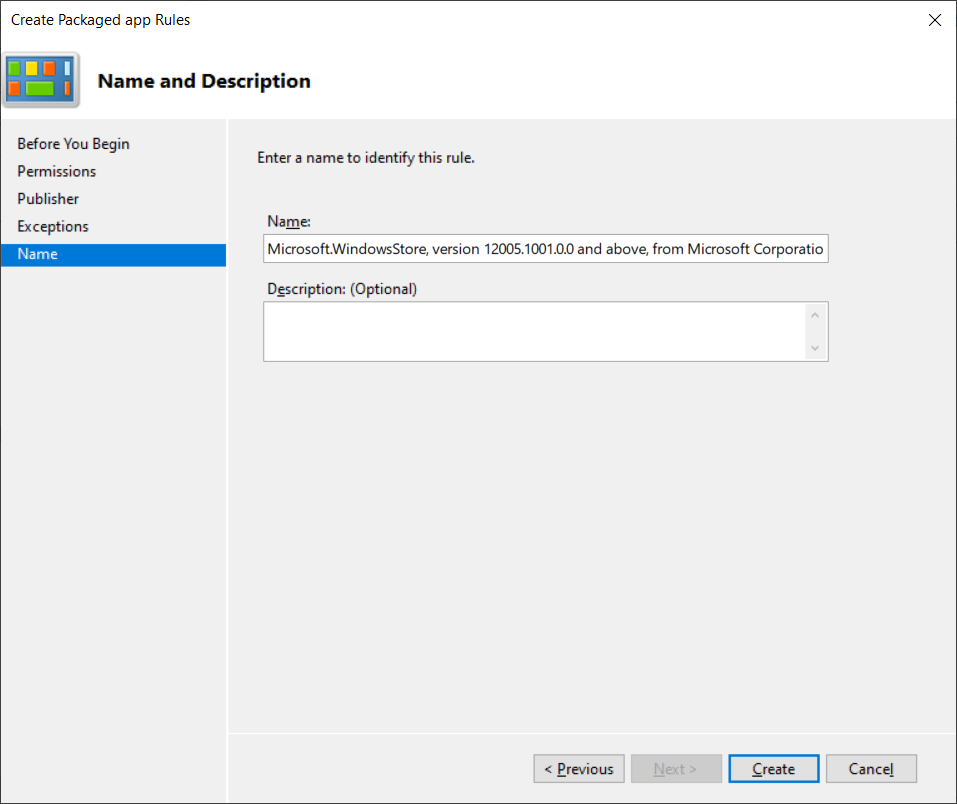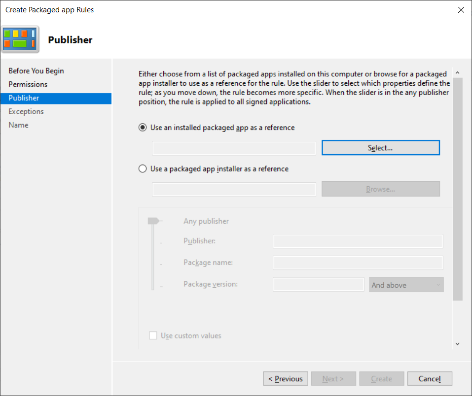 - Right-click on Packaged app Rules and choose Create New Rule.