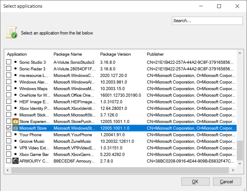 - Select Windows Store from the list, then click OK.