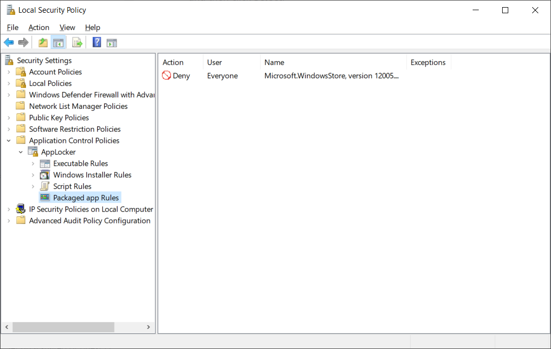 - You have now created a policy that blocks the Windows Store.