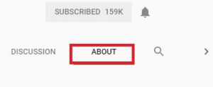- Once on their channel page, click the About tab.