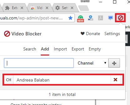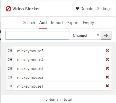 - Go back to the Add tab in Video Blocker and your blocked channels list should now be visible.