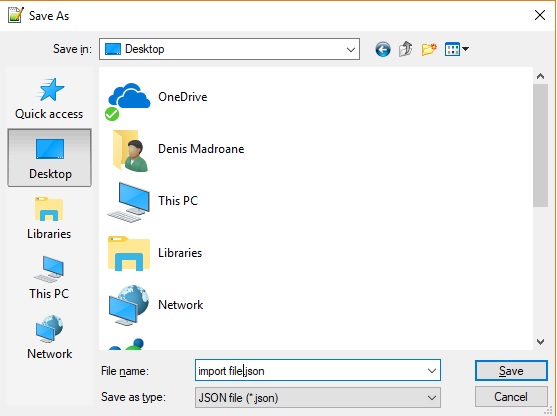 - Name your file whatever you like, but make sure to use the .json extension.