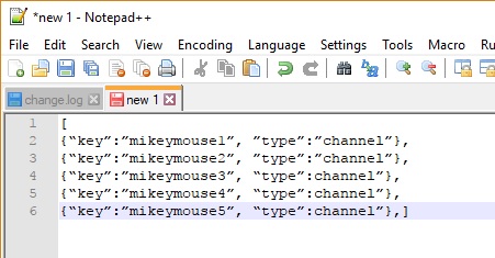 - Create a new text file and add code like this:[{“key”:”channel-name-1″, “type”:”channel”}, {“key”:”channel-name-2″, “type”:”channel”}, …]