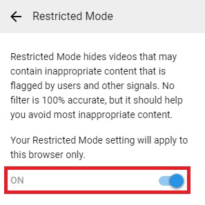 Once you enable it, YouTube will automatically hide or filter out videos that are likely to be inappropriate.
