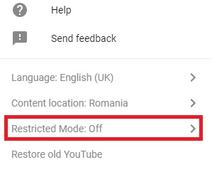 To turn on Restricted Mode, tap your user icon in the top-right corner and select Restricted Mode.