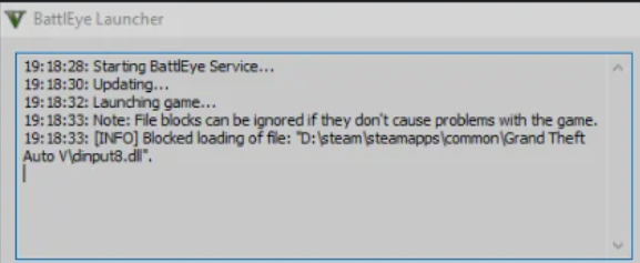 The error “Blocked Loading Of File dinput8.dll or Xinput1_4.dll” in GTA 5 usually occurs when BattlEye Anti-Cheat software blocks these DLL files, suspecting them to be unsafe or altered. This typically happens when BattlEye detects unauthorized modifications, often linked to modding tools, reshade presets, overlays, or input DLLs used to enhance gameplay or customize controls.