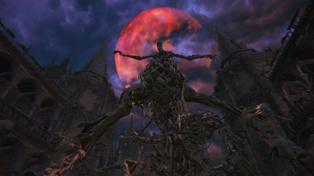 The final boss of Bloodborne, the Moon Presence, is a literal god that created and rules over the Hunter’s Dream. It has a body similar to a human’s; flesh, bone, a human ribcage. It has no definitive face, however, with only a hole present on the front of the head and tentacles protruding from the rest of the head, acting as hair.