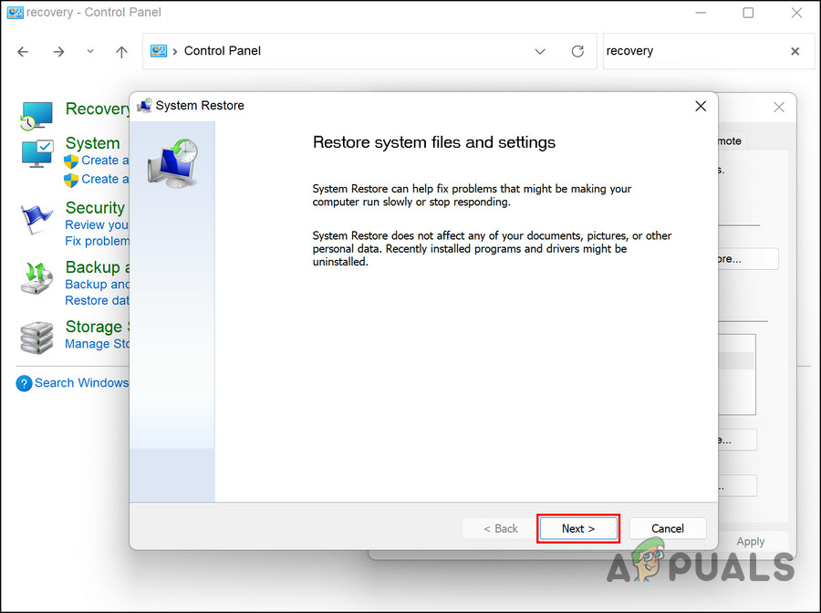 Important: System Restore may remove apps or updates installed after the restore point was created, so consider this before proceeding.