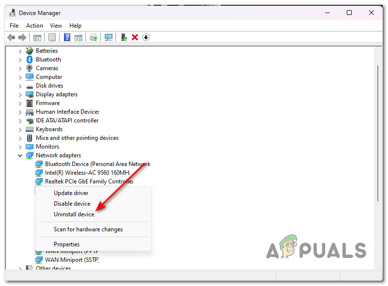 Uninstalling the device - Confirm when prompted, and restart your computer after uninstallation.