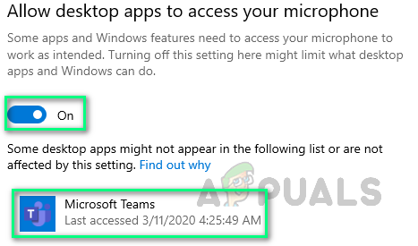 Turning on the Allow Apps to Access Microphone Option - Scroll down and also turn on Allow desktop apps to access your microphone. This lets traditional desktop applications (including MS Teams and web browsers) use your microphone.