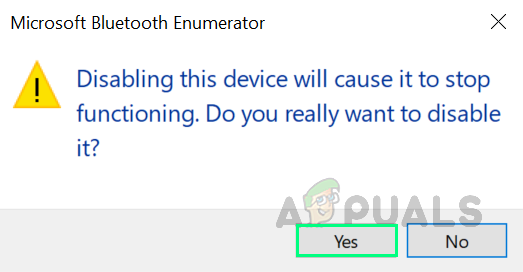 Disabling Microsoft Bluetooth Enumerator Device - A confirmation window will appear. Click Yes to disable the Microsoft Bluetooth LE Enumerator. This driver is mainly used for low-power communication, but disabling it can resolve audio problems in Teams.
