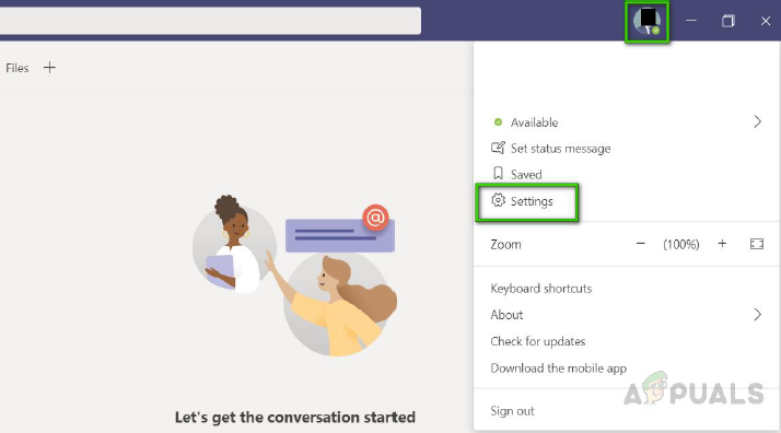 Opening MS Teams Application - Click your profile picture in the top right, and select Settings. This opens all Teams settings including General, Privacy, Notifications, and Permissions.