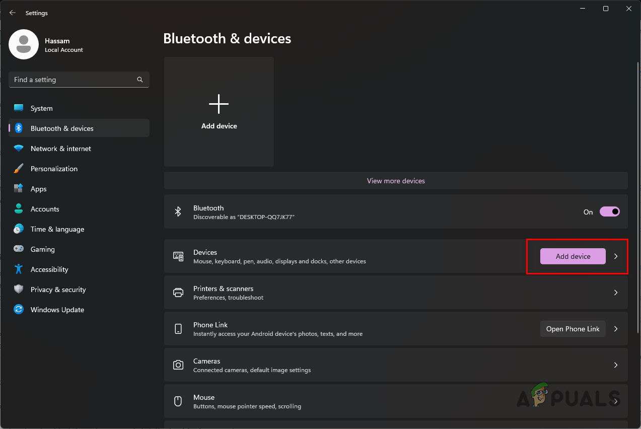 - Enable Bluetooth and then click on the Add device option.