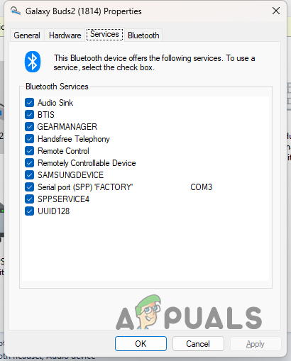 Bluetooth Device Services - Click Apply and then OK. Check if Bluetooth now works correctly.