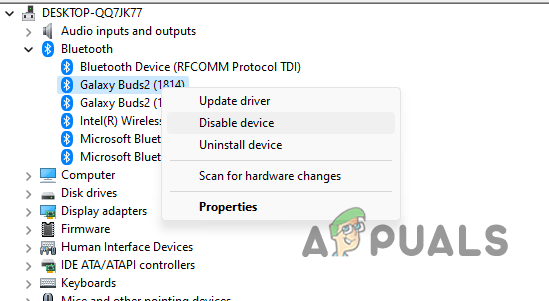 Disabling Bluetooth Device - Right-click on it again and select Enable device.