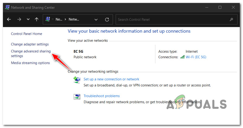 - On the left, click Change advanced sharing settings.