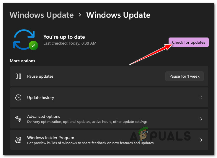 - On the right side, click Check for Updates.