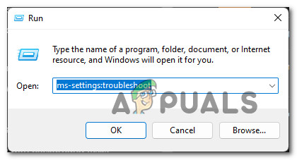 - Press Windows key + R to open the Run box. Type ‘ms-settings:troubleshoot’ and press Enter to open the Troubleshooting tab in Settings.