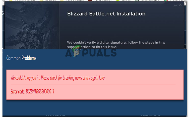 Many players reported the error “BLZBNTBGS80000011” when they try to connect to the Blizzard Battle.net platform. As per the users, the error message that appears on the screen is “We couldn’t log you in. Please check for breaking news or try again later. Error code: BLZBNTBGS80000011” and they can’t connect to Battle.net client. The error is commonly seen due to the server maintenance or the downtime process is going.