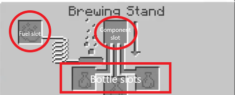 - Bottom 3 branched slots: The bottle slots. Place 1 water bottle in each slot, or other potions if needed.