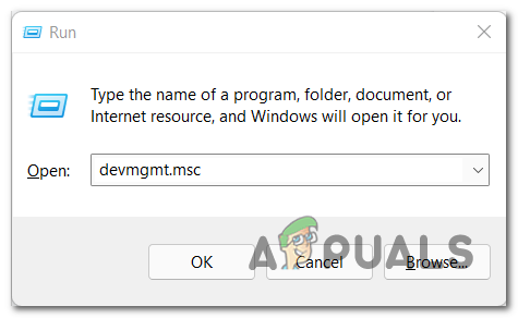 - Press Windows key + R to open the Run dialog box. Inside it, type ‘devmgmt.msc’ and press Enter. If prompted by the User Account Control, click Yes to grant admin access.