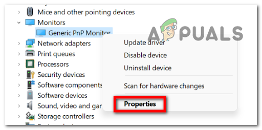 - Once the generic driver is disabled, right-click on your monitor again and choose Properties from the menu.