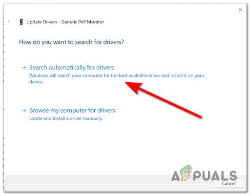 Update the driver after it’s disabled - You’ll see two options. Click on Search automatically for drivers. After Windows searches and installs any available drivers, you can close the window.
