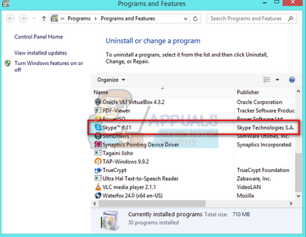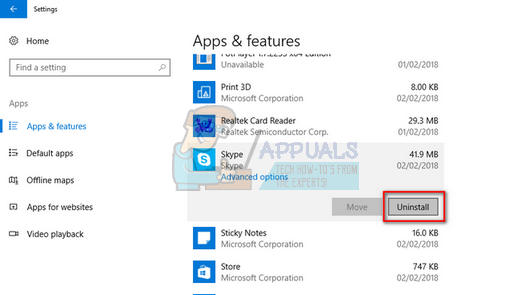 There were numerous reports that the communications application “Skype” was also the root of the problem. Skype is a well-known application used for video and voice calls all over the world as well as for business purposes. Skype has a history of having trouble with Windows for a while now. The ideal case is to keep your Skype updated to the latest build at all times. We can try uninstalling Skype and see if this solves the problem. If it does, and you want to still use Skype, we can try updating it to the latest version out there.