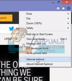 - Click on the “gears icon” present at the top-right side of the screen of the browser and select “Internet options” from the list of options available.