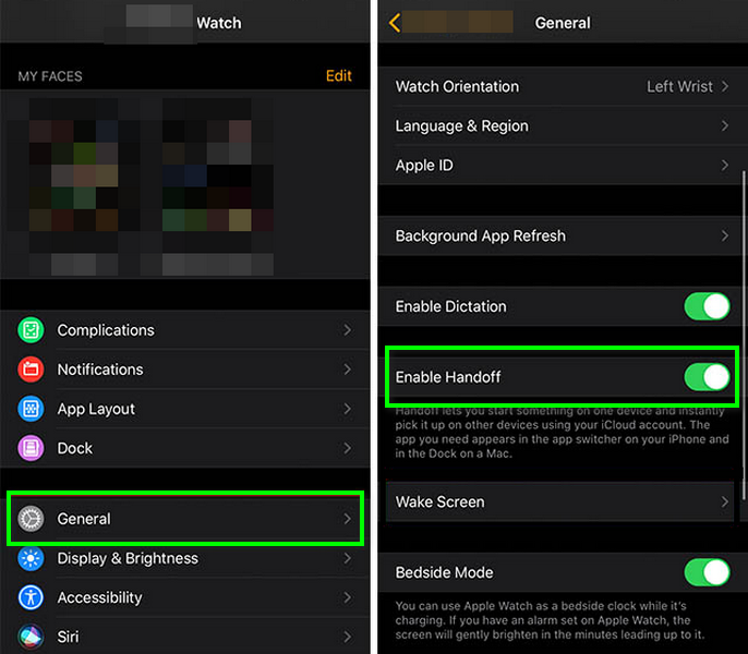Disable Handoff in iPhone’s Settings - Open the Apple Watch app on your iPhone, go to My Watch, tap General, and disable Handoff.