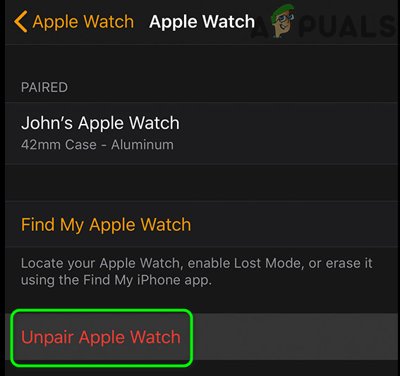 Tap on Unpair Apple Watch - Tap Confirm to unpair. Enter your Apple ID and password if required.