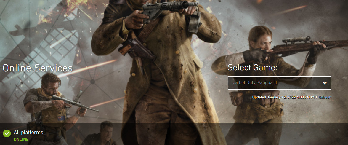 Once on the status page, use the drop-down menu at the top right and select Call of Duty: Vanguard. Look for any warnings or alerts from Activision about current problems. If everything is marked green, server issues are unlikely.