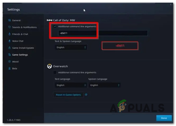 Forcing DirectX 11 - Try launching through Battle.net.