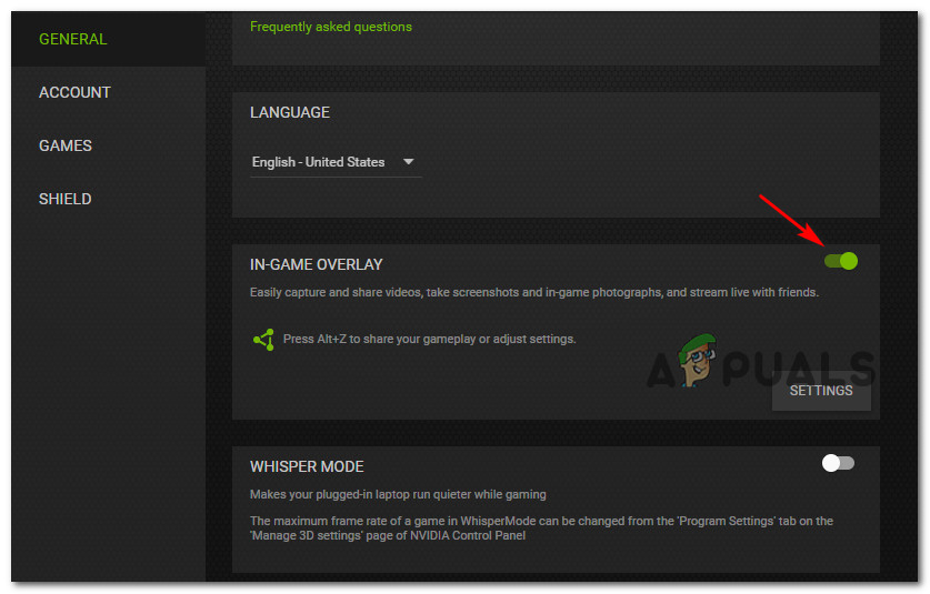 - Open GeForce Experience, go to General.