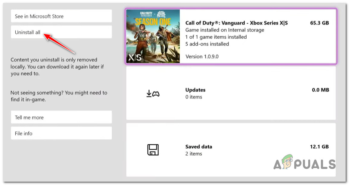 Managing the game on Xbox - Select Uninstall all.