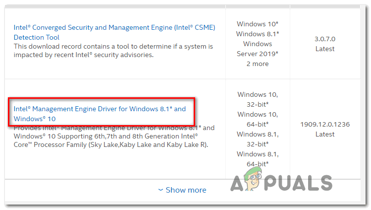 - Go to Intel’s download page for Management Engine drivers.