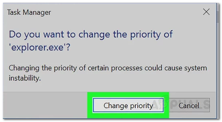 Setting Priority - If prompted for confirmation, click Change Priority.