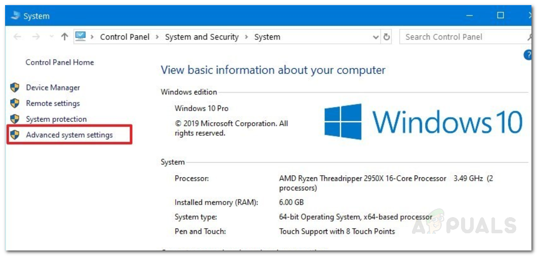- On the left, click Advanced system settings.