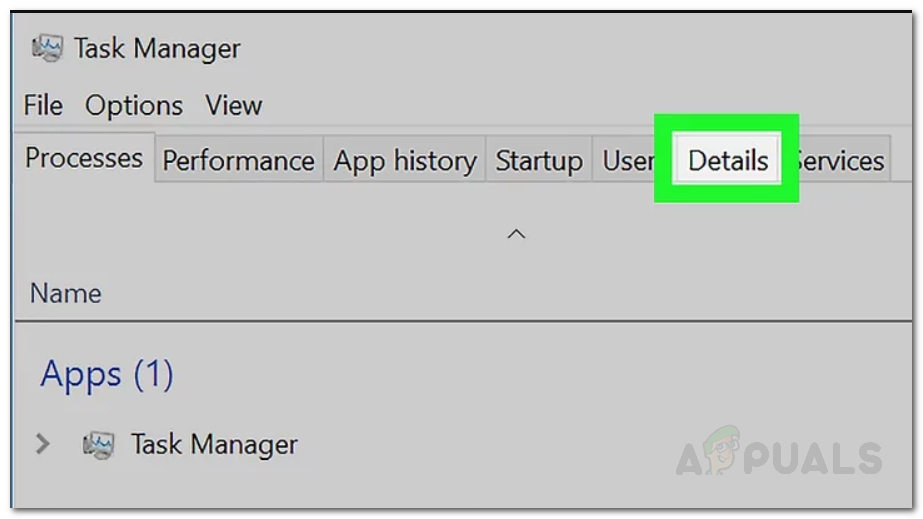 - In Task Manager, switch to the Details tab to see all running processes.