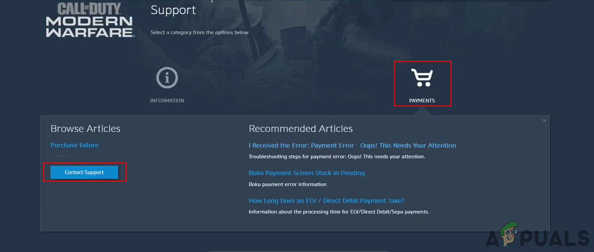In the support page, select one of the games - Click on Payments and then Contact Support.