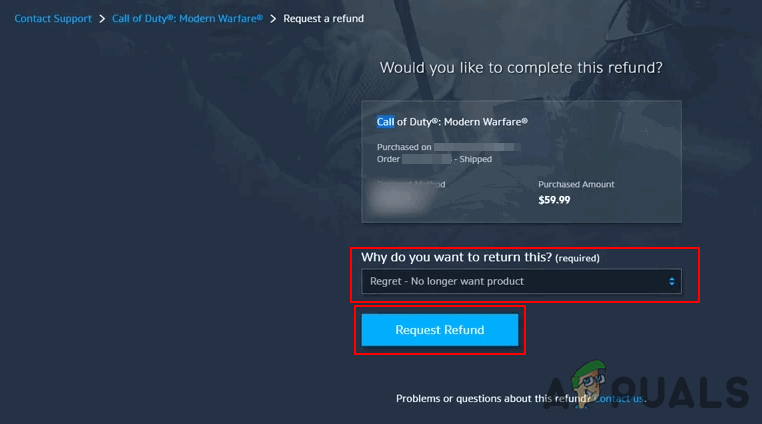 Choosing the order - If you qualify, choose the reason for your refund and click Request Refund.