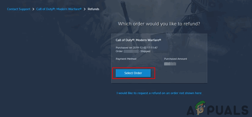 Choosing the Request a refund option - Hit Select Order and wait for Blizzard’s response.