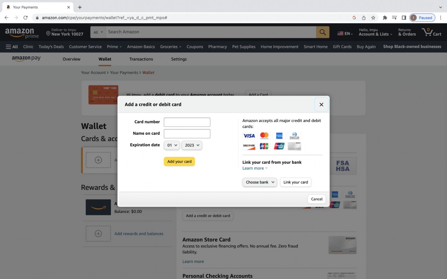 Adding your PayPal Debit or Credit Card to your Amazon account is straightforward. Here’s how to do it in a few minutes: