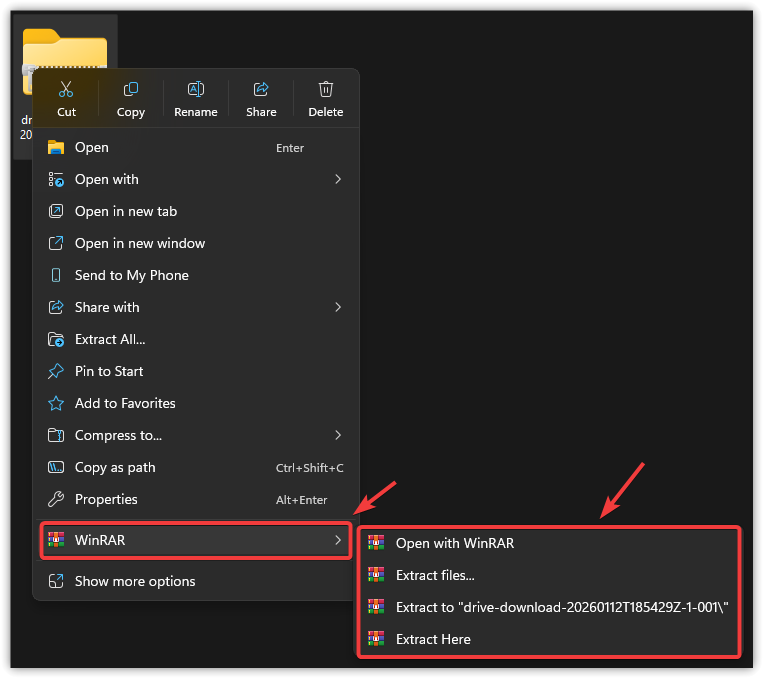 - Select Extract Here or Extract to Folder using the installed extractor.