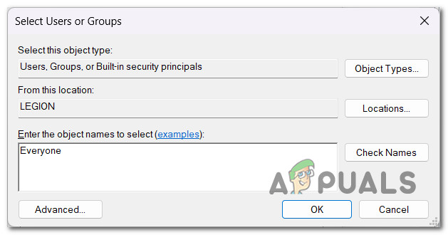 - Type Everyone, then click OK.