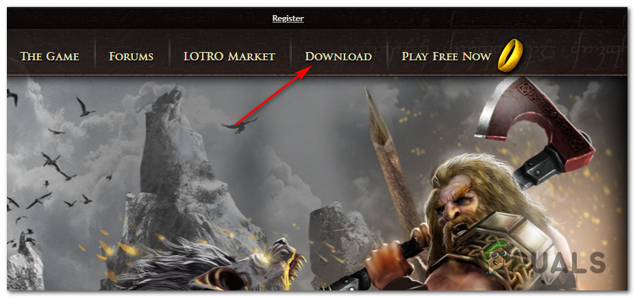 - Once your computer boots back up, visit the official LOTRO website and click the Download button in the top-right corner of the screen.