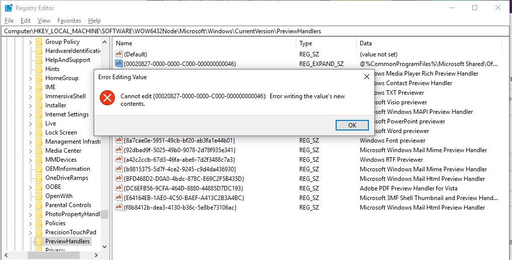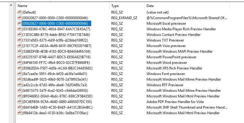 HKEY_LOCAL_MACHINE\SOFTWARE\Wow6432Node\Microsoft\Windows\CurrentVersion\PreviewHandlers